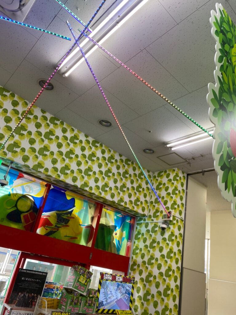 平和島店様独自の工夫として、LEDを仕込んだバーも設置しました。今回は4mを5本です。